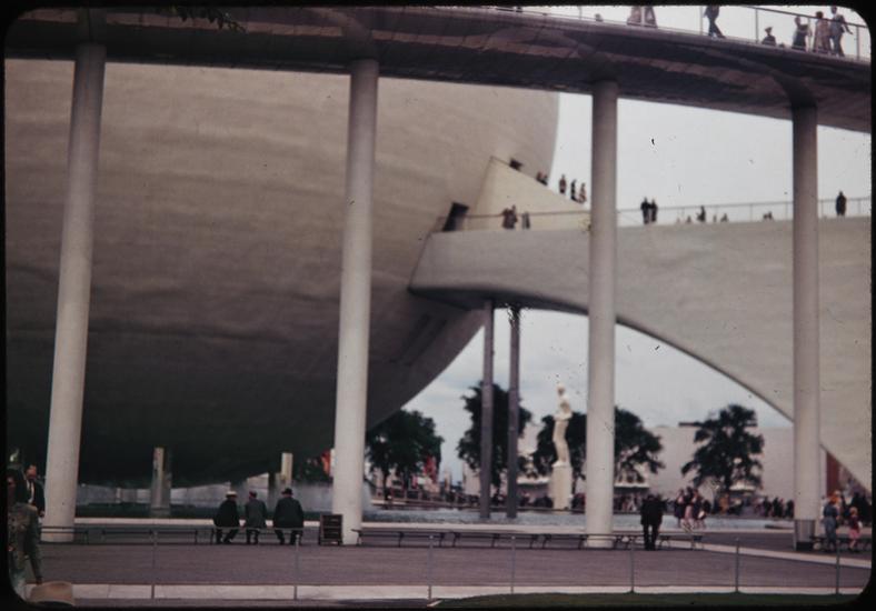 [Lawn below the walkway of the Perisphere.]