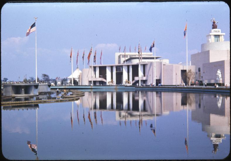 [The Italian and British Pavilions across the Lagoon of Nations.]
