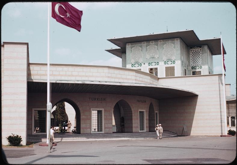 [British and Italian Pavilions through the Lagoon of Nations.]