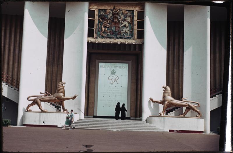 [British and Italian Pavilions through the Lagoon of Nations.]