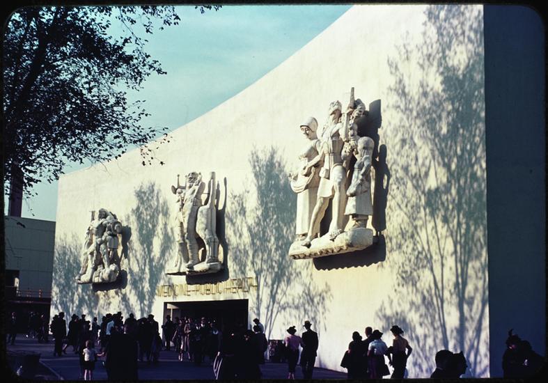["The School" on the Medicine and Public Health building, New York World's Fair.]