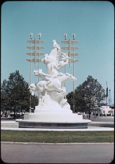 ["Manhattan" sculpture in front of the Marine Transportation Building.]