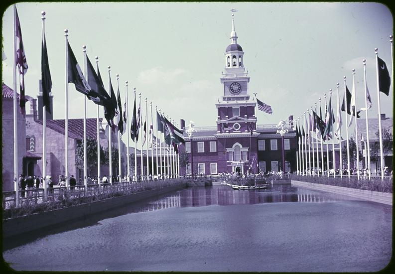 ["Manhattan" sculpture in front of the Marine Transportation Building.]