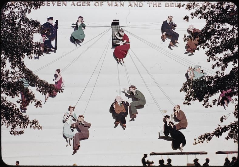 [American Telephone & Telegraph Company building showing The Seven Ages of Man and the Bell System facade, New York World's Fair.]