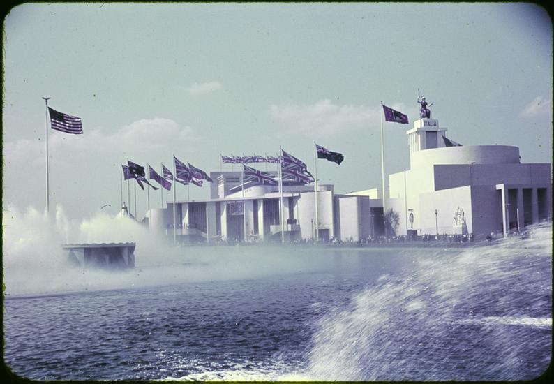 [The Italian and British Pavilions across the Lagoon of Nations.]