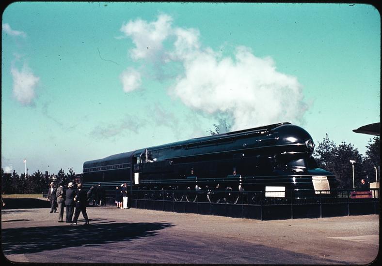 [Replica of the Jupiter locomotive in a scene of the Parade of Railroads show.]