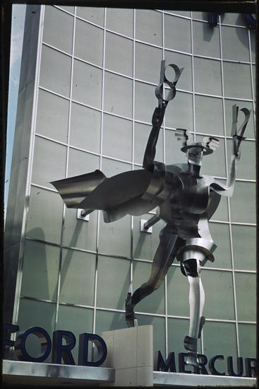 [New York World's Fair. Ford Building, metal "Mercury" sculpture.]