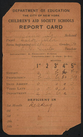 Record of John Jas. Cahill, a pupil of Class 1, Grade 1