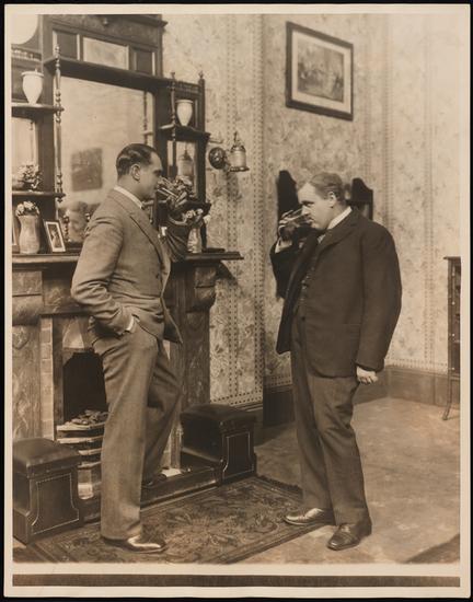 [Dorice Fordred as Madame Collins and Charles Laughton as William Marble in "Payment Deferred".]