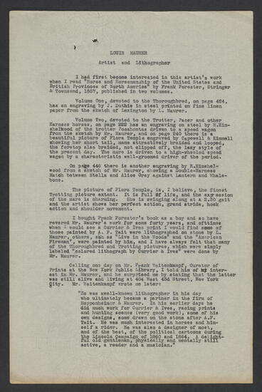 Draft of part one of "Currier & Ives: A Chronicle of the Firm, and of the Artists and their Work, with Notes on Collecting"