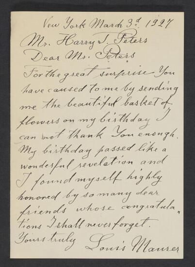 Draft on Louis Maurer by Harry T. Peters, letter from Louis Maurer to Harry Worcester Smith, November 29, 1923, and letter from Louis Maurer to Harry T. Peters, March 3, 1927