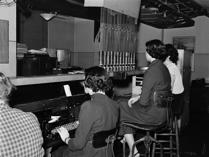 Stock Exchange [Women giving a tour of the stock exchange.]