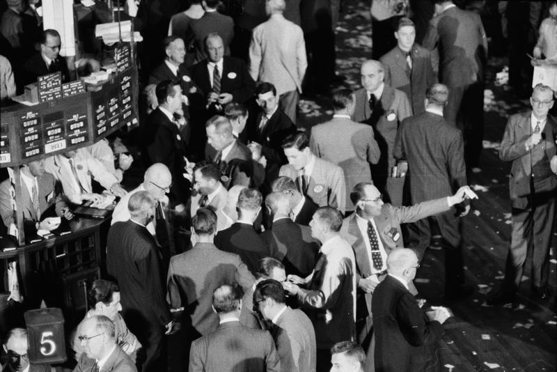 Stock Exchange [Overhead view of the floor of the stock exchange.]