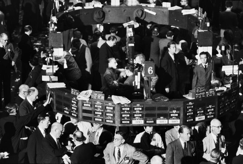 Stock Exchange [Overhead view of the floor of the stock exchange.]