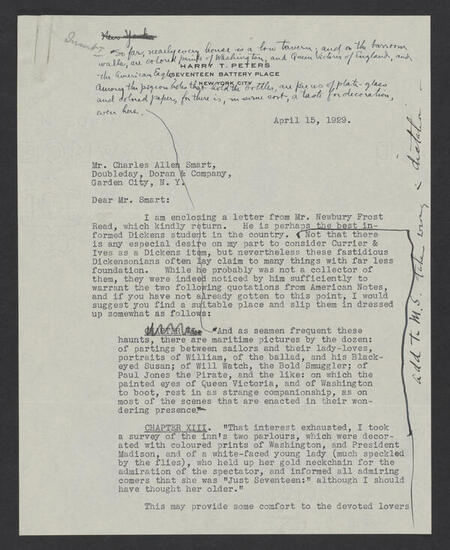 Letter from Harry T. Peters to Charles Allen Smart of Doubleday, Doran & Company, April 15, 1929