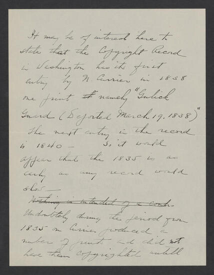 Draft of acknowledgements for "Currier & Ives: Printmakers to the American People"