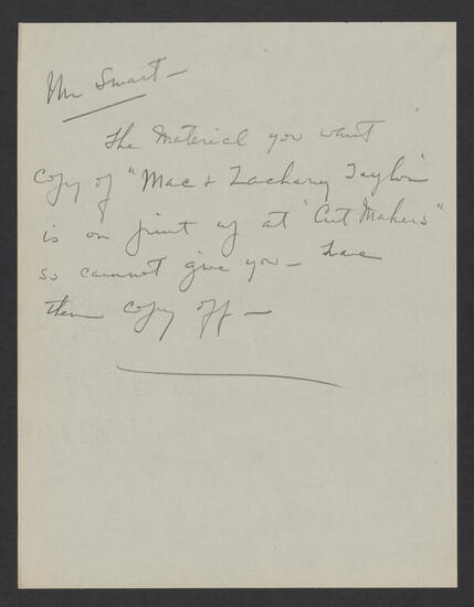 Note from Harry T. Peters to Charles Allen Smart and draft of "The Horses" chapter of "Currier & Ives: Printmakers to the American People"