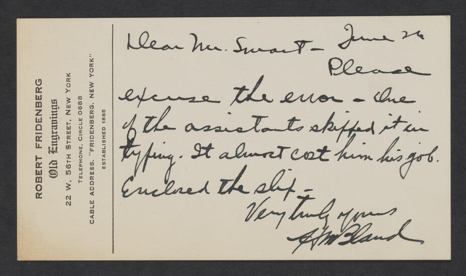 Draft list of the prints reproduced and note from Harry T. Peters to Charles Allen Smart