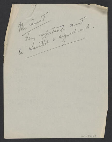 Draft list of the prints reproduced and note from Harry T. Peters to Charles Allen Smart