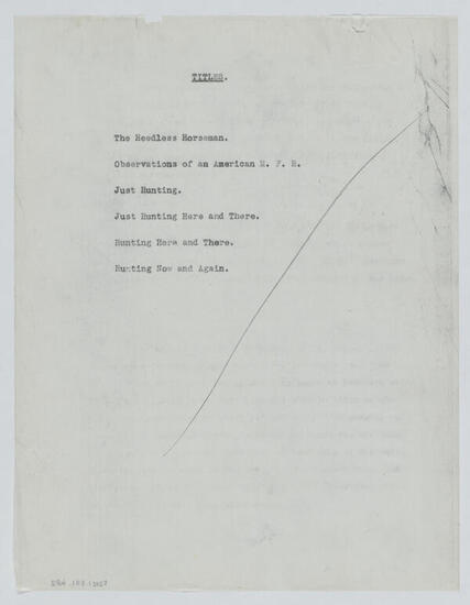 List of possible titles for "Just Hunting"