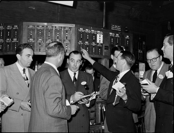 Stock Exchange [Stockbrokers on the floor of the stock exchange.]