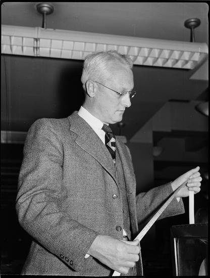 Stock Exchange [Men looking at stock prices on the floor of the stock exchange.]