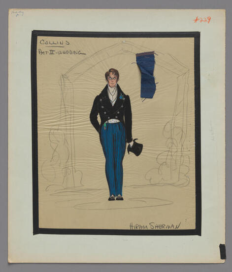 Collins, Act I, Arrival - Hiram Sherman [Costume design for "First Impressions".]