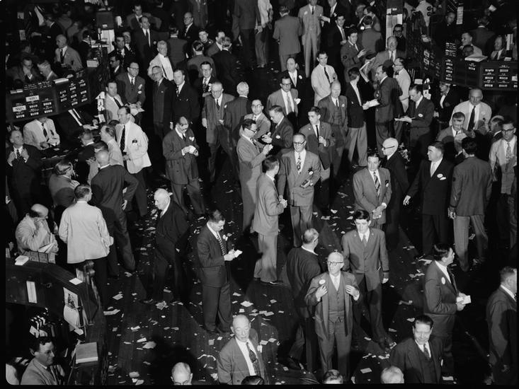 Stock Exchange [Overhead view of the floor of the stock exchange.]