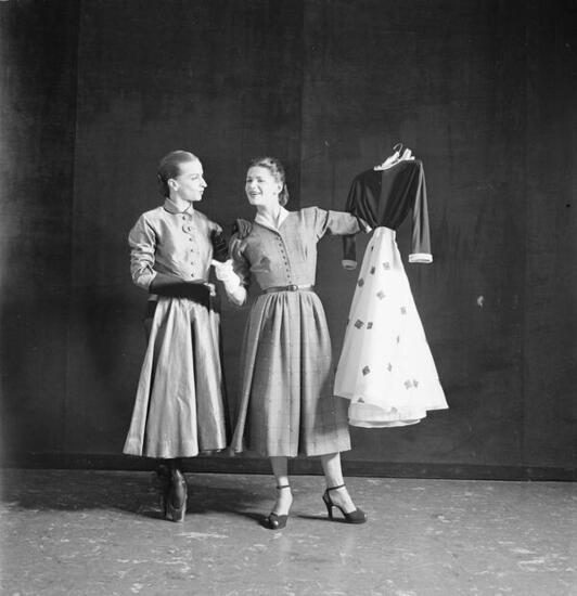 Photographs of ballerinas from New York City Ballet dancing while wearing and holding a variety of costumes, including leotards, dresses, and suits. Date of assignment February 19, 1952. Story published in LOOK on May 6, 1952 pages 98-102.