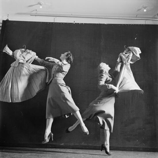 Photographs of ballerinas from New York City Ballet dancing while wearing and holding a variety of costumes, including leotards, dresses, and suits. Date of assignment February 19, 1952. Story published in LOOK on May 6, 1952 pages 98-102.