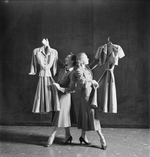 Photographs of ballerinas from New York City Ballet dancing while wearing and holding a variety of costumes, including leotards, dresses, and suits. Date of assignment February 19, 1952. Story published in LOOK on May 6, 1952 pages 98-102.