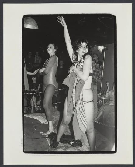 Lady Wrestling Night at Club 57 - Tom Scully framed by Snooky and Tish