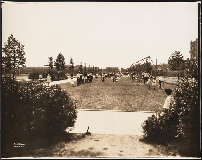 Thomas S. Boyland Street and Blake Avenue. Betsy Head Memorial Playground. Garden with children