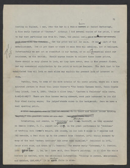 Draft of part one of "Currier & Ives: A Chronicle of the Firm, and of the Artists and their Work, with Notes on Collecting"