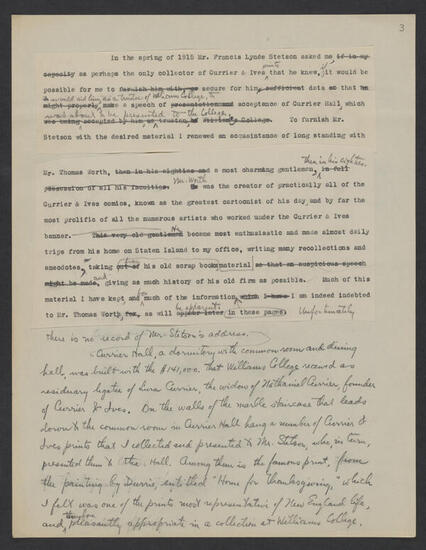 Draft of part one of "Currier & Ives: A Chronicle of the Firm, and of the Artists and their Work, with Notes on Collecting"