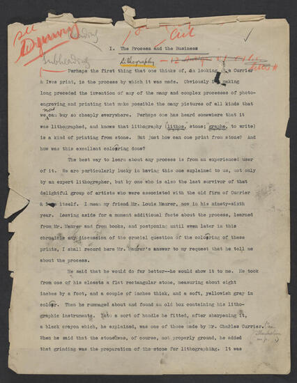 Draft of part one of "Currier & Ives: A Chronicle of the Firm, and of the Artists and their Work, with Notes on Collecting"