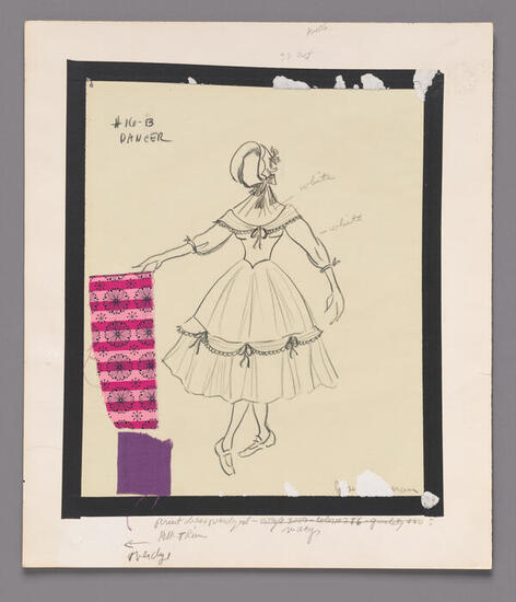 Sketch #16-B. Print dress overdyed [...]. Black trim.