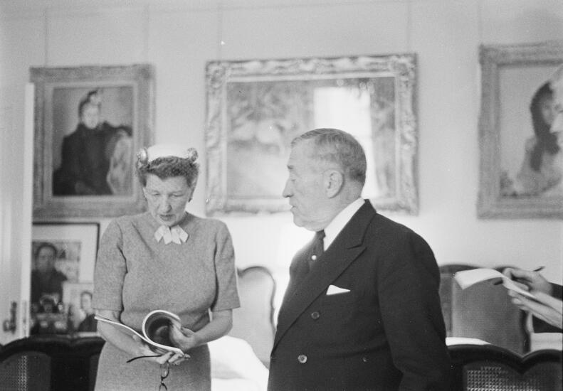 New York Streets--Fifth Avenue [Chester Dale with his art collection in his suite at the Plaza Hotel.]