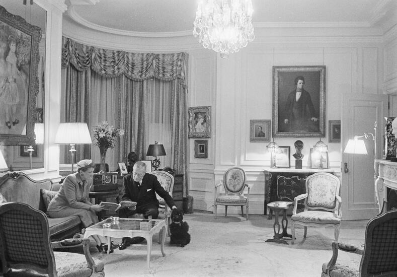 New York Streets--Fifth Avenue [Chester Dale with his art collection in his suite at the Plaza Hotel.]