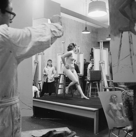 New York Streets--Fifth Avenue [Students at National Academy School of Fine Arts painting model.]