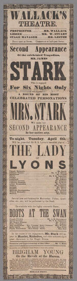 Monday evening, October 27, 1862, "The Lady of Lyons"