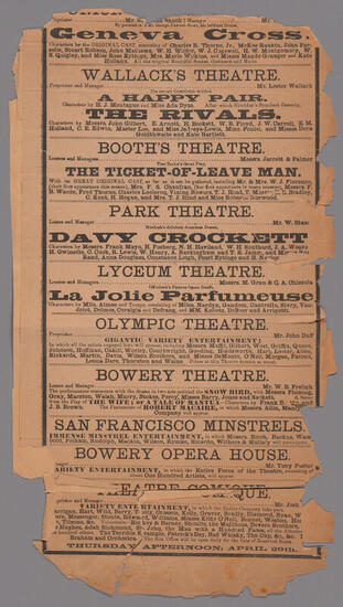 Tuesday, February 13, 1866, benefit of Mr. J. W. Wallack. First time this season, "The Iron Mask"
