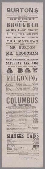 Friday, December 18, 1857, Sheridan's comedy of "The Critic; or, A Tragedy Rehearsed" illustrated by the highest comic talent in the world. A cast that no other theater ever did or ever will equal