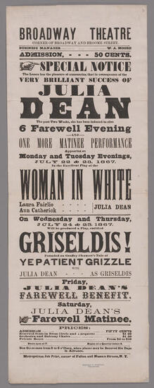 Monday and Tuesday evenings, February 17 and 18, 1868, the comedy in three acts by Charles Gaylor, entitled "Our Female American Cousin"