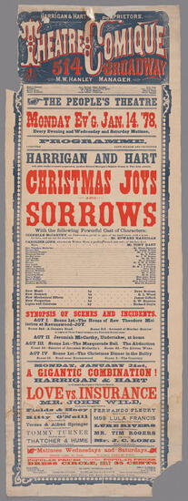 Monday, March 11, 1878, Harrigan and Hart will appear in Edward Harrigan's great hit of the season, "Sullivan's Christmas"