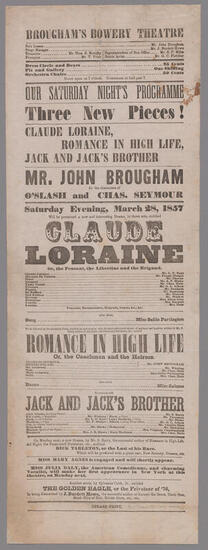 Glorious attractions for St. Patrick's Day, Tuesday evening, March 17, 1857. "Jack Sheppard" and "Karmel the Scout; or, The Rebels of the Jerseys"