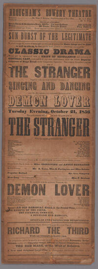 Brougham’s Bowery Theatre. Incomparable bill! Stay away if you can. Thursday evening, October 9, 1856, “Dred; or, The Dismal Swamp” and “Po-ca-hon-tas; or, The Gentle Savage”