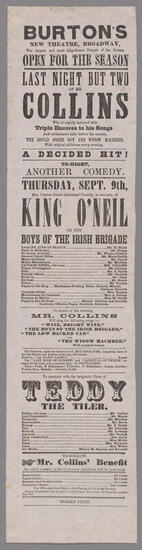 Tonight, Thursday, March 29, 1860, will be presented for the first time an entirely new Irish drama in three acts written by Dion Boucicault, "The Colleen Bawn; or, The Brides of Garryowen"