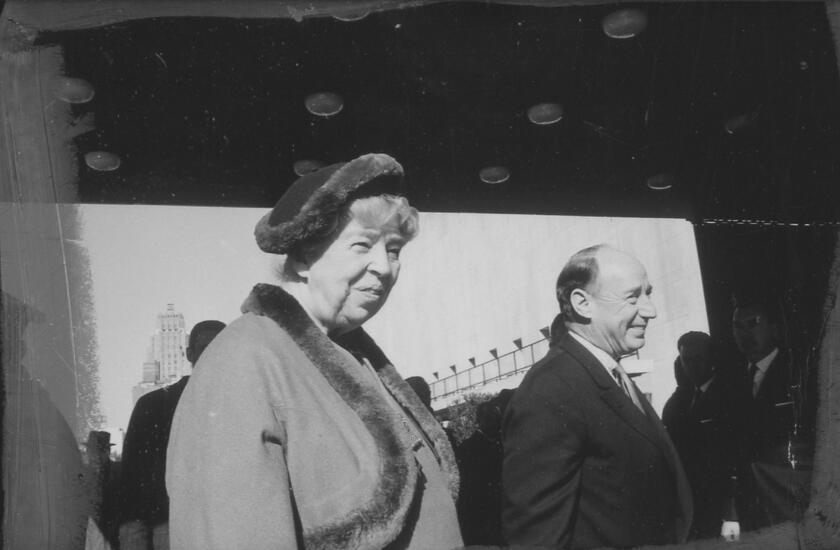 [Adlai Stevenson II and Mrs. Lyndon B. Johnson at a gala preview of "After the Fall".]