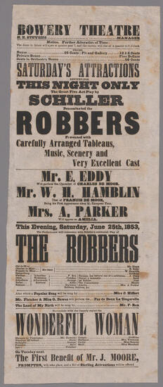 Wednesday evening, June 10, 1857, the performance will commence with the drama entitled "Jacobe Leisler; or, New York in 1691" with Mr. R. Johnston as Jacobe Leisler